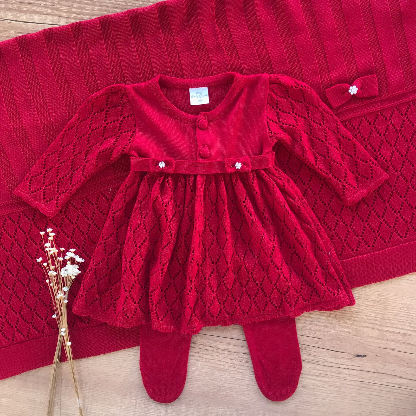 Saida Maternidade Ponto Vazado 3 Peças Vermelho